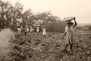 Ladies of the Land, Easy Hall Plnt, planting cane ratoons, 1980-bds44-01-sepia